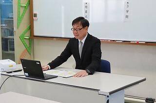 1月7日(水)第3学期の始業式を行いました。感染症予防対策のため、始業式はオンライン形式で実施しました。式では、生徒代表が、2学期の反省を生かし、3学期の目標に向けて努力していくことを力強く決意表明しました。また、校長先生からは、「一日の計は元旦にあり」という言葉をもとに、目標をもって計画的に日々を過ごし、目標達成に向けて努力してほしいというお話がありました。児童生徒は、それぞれの教室で真剣な態度で話に耳を傾けていました。