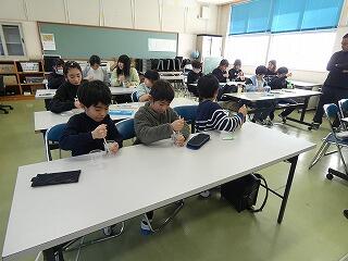 2月13日(金)6校時のクラブ活動で、スライム作りに挑戦しました。洗濯のりにホウ砂水を少しずつ混ぜていくと、液体がだんだん固まっていく様子に、子どもたちは興味津々でした。混ぜる途中で、それぞれが好きな色の絵の具を加え、赤や青、紫など色とりどりのスライムが完成しました。感触を楽しみながら、思い思いに伸ばしたり丸めたりして活動する姿が見られました。完成したスライムを手に、子どもたちは大喜びでした。