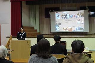 1月22日(木)に、給食感謝集会を行いました。当日は、栄養士の関口先生をお招きし、はじめに給食の歴史や栄養バランスの大切さについて、分かりやすく教えていただきました。その後、給食センターの職員の皆様が給食を作ってくださる様子を収めた映像を視聴しました。最後に、児童生徒を代表して生徒会長より、栄養士の関口先生に対して、おいしい給食をつくっていただいている感謝の気持ちを込めてお礼の言葉を伝えるとともに、児童生徒で作成したお礼の品をお渡ししました。日頃何気なく食べている給食が、多くの方々の努力と工夫によって支えられていることを改めて知り、児童生徒は、感謝の気持ちを深めることができました。
