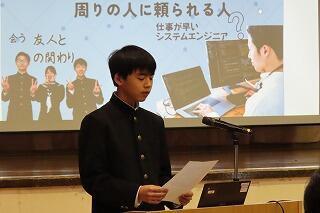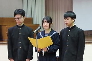 それぞれが自分自身と向き合い、今の決意やこれからの目標を自分の言葉で力強く伝える姿は、大変立派でした。今回発表した思いを胸に、これからの日々の学校生活の中でさらに成長していくことを期待しています。