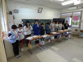 【5.6年生は、修学旅行の思い出やリコーダー演奏・合唱の発表を行いました。そして、最後に5年生から6年生へ、6年生から5年生へ、子どもたちから保護者の方へ感謝のメッセージを贈りました。涙、涙で感動の参観授業となりました。】