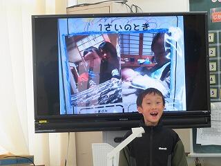 【1.2年生は、生活科「これまでのわたしこれからのわたし」という単元のまとめとして、保護者の方への感謝の気持ちやこれから頑張りたいこと等を発表しました。また、音楽で練習した「にんげんっていいな」の合奏も披露しました。】