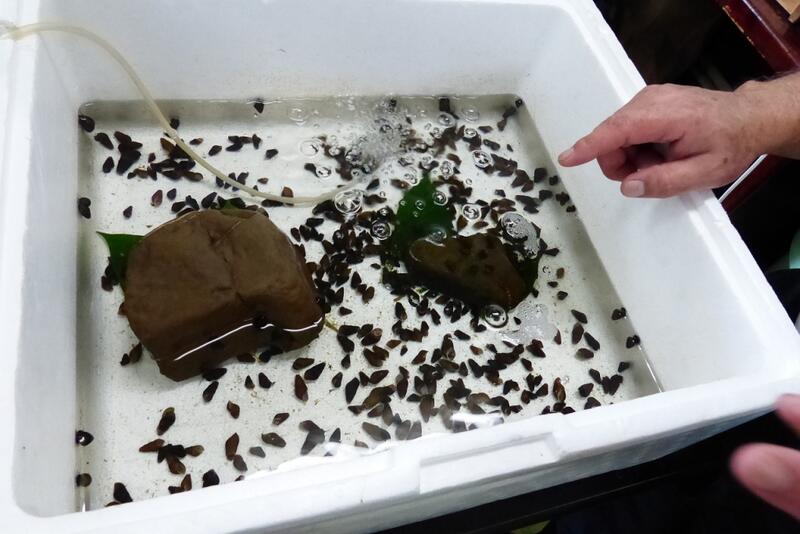 水槽で増やしているカワニナですが,小さい個体がほとんどいなくなり,どうしても大きな親を