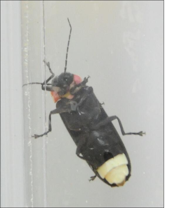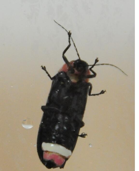 上のホタルの白い発光帯が2つあるのが雄下のホタルの先端が赤いのが雌