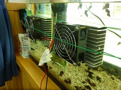 本来なら、水槽用の冷却装置が欲しいところですが、経済的理由で購入できない