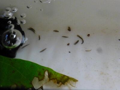 こちらの観察トレイで育てているホタルの幼虫はあまり餌を食べている雰囲気ではありません。