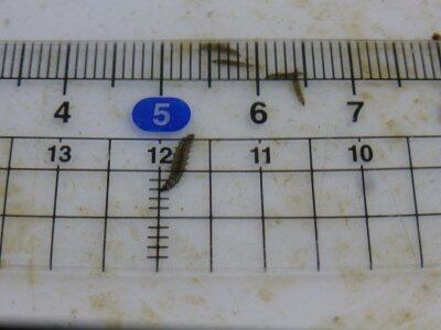 また、体長をはかってみると、大きいものが15mmになっているようです。