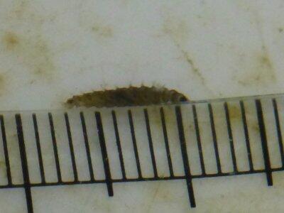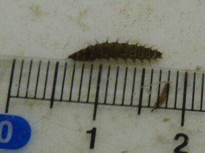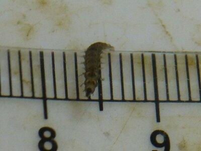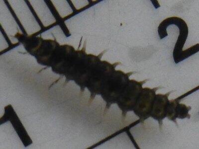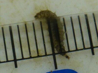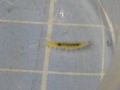 今日の幼虫は、長さ6mm。厚みが1mmになっていました。