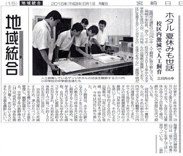 中学部のホタル育成へのチャレンジが、たくさんの人に伝わることを願っています。