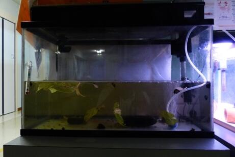 早速、1・2年生がホタルの産卵場所を作成しました。
