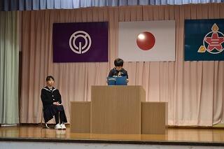 2学期終業式の児童生徒代表作文では、小学1年生と中学1年生が発表しました。小学1年生は、職員室前での「おはようございます」のあいさつが苦手だったが2学期はできるようになったことや算数の計算の仕方について3学期の目標を発表し、中学1年生は英語暗唱弁論大会など学校外での活動が自信になったことを発表し、2学期が充実した学校生活であったことを改めて感じさせました。さらに、校歌のピアノ伴奏でも小学6年生が連弾にチャレンジしたこともその一つでした。校長先生は話の中で、子どもたちの頑張りを大いに称え、次へのステップに進もうという新たな決意を抱かせてくださいました。キーワードは「覚悟」です。『果たしてうまくできるだろうか、みんなに迷惑をかけるのではないだろうか、など不安が先立つものです。しかし、いずれはやらなければいけない時期が来ます。できるだけ早いうちに「覚悟」を決めて、いろいろなことに挑戦しましょう。その積み重ねが夢の達成につながります。』大変貴重な話をしてくださいました。子どもたちは、自分なりのめあてや目標をもって、冬休みに入ります。終業式後には、読書感想画や作文において表彰がありました。表彰の多さにも子どもたちの頑張りが表れていました。