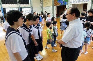 終業式では、児童・生徒代表が、1学期頑張ったことやこれからの目標などについて発表しました。また、校長先生から「夢をもつこと」とその夢に向かって「挑戦をし続けること」の大切さや、身の回りには危険がたくさんあるので、気を付けて生活することなどについて等の話がありました。