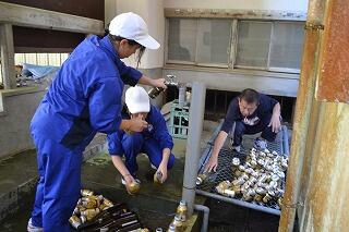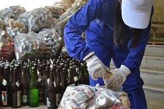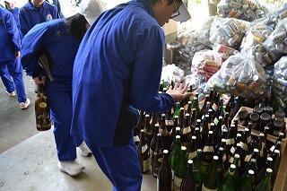 10月9日に第1回の廃品回収を行い、地域の皆さまから回収にご協力いただいた瓶や空き缶などを、中学部の生徒と職員が力を合わせて丁寧に仕分けしました。生徒たちは、リサイクルの大切さを学びながら、笑顔で作業に取り組んでいました。