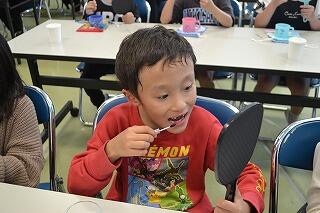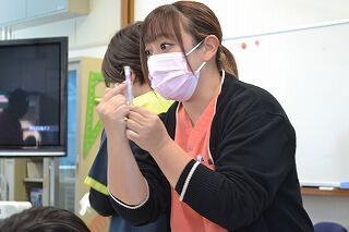10月29日(水)、北浦歯科医院の林正太郎先生と歯科衛生士2名の方を講師にお招きし、小学部の歯みがき指導を行いました。児童は、歯垢染め出し液を使って自分の歯の汚れを確認したり、正しい歯みがきの方法を教えていただいたりしながら、歯みがきの大切さを学びました。また、歯だけでなく、歯茎や舌、頬の内側もていねいに磨くと良いことを教えていただき、教員にとっても新たな発見の多い学びの時間となりました。