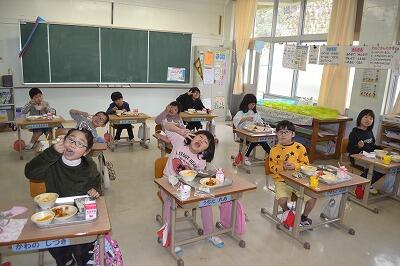 1年生は給食が始まったばかりです。毎日、「おいしい!」と喜んで食べています。