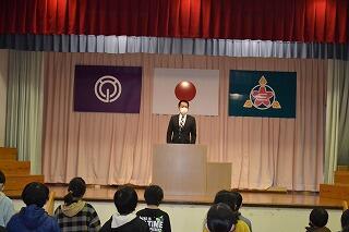 令和2年度 三川内中学校「立志式」が実施されました。志を立てるために、コロナ禍の状況にありながらも総合的な学習の時間や学級活動、さらには、昼休みも利用して準備とリハーサルに力を注いだ結果、少人数ながらも内容の充実した立志式となりました。3名の中学2年生が、今までの生活経験から得た将来の夢についてプレゼンテーション形式で発表し、参加者全員で共感しました。