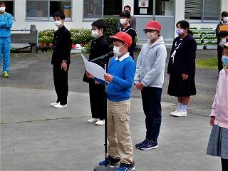 各学部の代表児童生徒による歓迎の言葉と、小学1年生の自己紹介、中学1年生の代表挨拶を行いました。マスク越しですが、少しは心の距離が縮まったのではないかと思います。