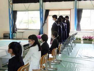 卒業生の皆さんは、ほとんど練習無しでの本番でしたが、立派な態度で式に臨み、素晴らしい卒業式になりました。中学校に進学しても、活躍してくれることと期待しています。