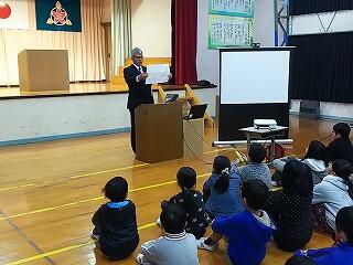 校長先生から、「この写の季節はいつでしょう?」の問に、「夏のひまわり」「春の菜の花」などなど。手振り身振りを交えながら真剣に考えを発表する姿は、更に成長を感じた瞬間でした。