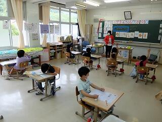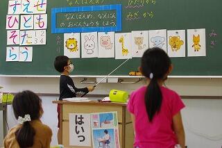 <絵日記を発表する1年生の様子>