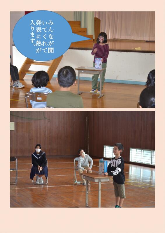<初めての自由研究を発表する3年生の様子>