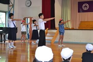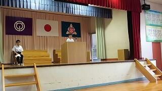 終業式では、児童・生徒代表が、1学期頑張ったことやこれからの目標などについて発表しました。また、校長先生から「夢をもつこと」とその夢に向かって「挑戦をし続けること」の大切さや、身の回りには危険がたくさんあるので、気を付けて生活することなどについて等の話がありました。