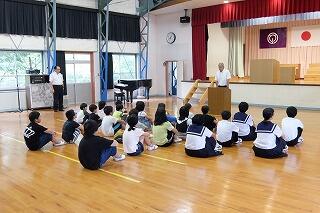 を紹介されました。その後、体育館の中であいさつの練習もしました。家庭や地域の中でも上手なあいさつをする習慣が身に付くといいですね。