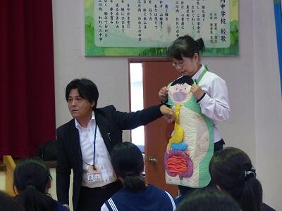 クイズを交えながら、腸のはたらきや、よいウンチの見分け方、食生活の改善の