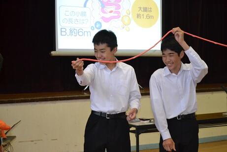 クイズを交えながら、腸のはたらきや、よいウンチの見分け方、食生活の改善の