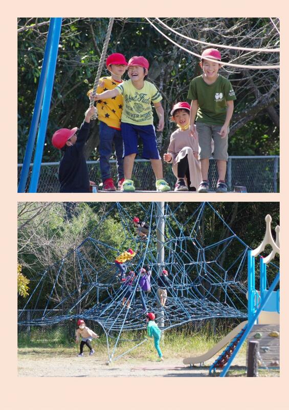 次に、ビーチの森すみえに行き、秋探しをしました。普段見ないような大きさや色の葉っぱや花びら、木の実などを見つけました。その後、しばらく遊具で遊んで帰りました。