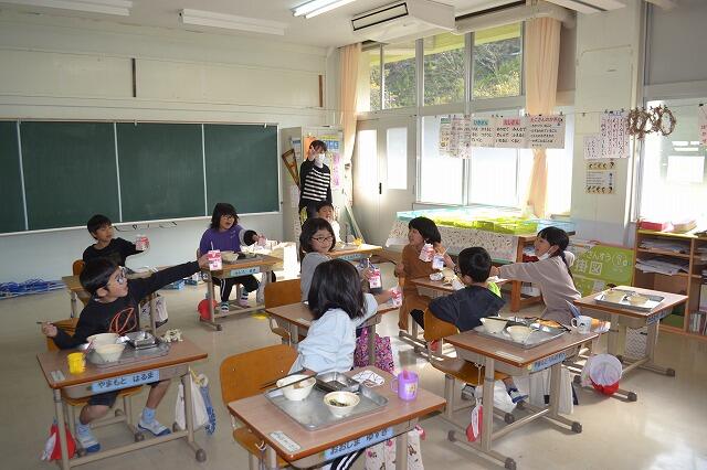 また、複式学級においては、複式解消のために中学部の先生による書写や体育の乗り入れ授業、教頭先生による複式解消授業及び授業サポート等を行っています。