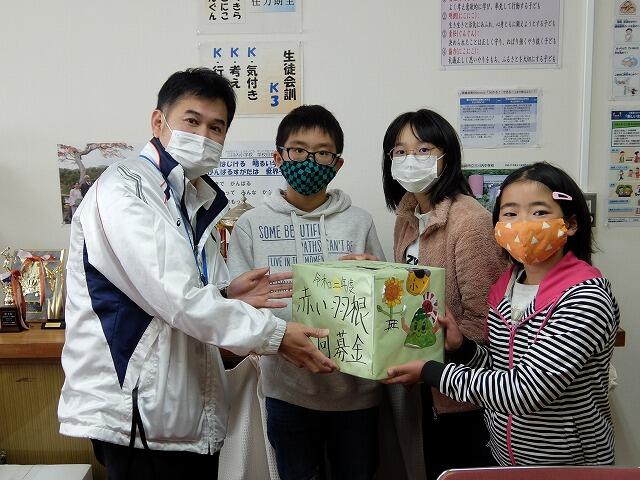 集まった募金を、延岡市社会福祉協議会北浦支所を通して、延岡市共同募金会へ寄付しました。三川内小中学校の児童生徒、保護者、職員の善意が届いたと思います。