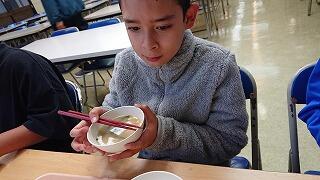 手前の平屋が中学部校舎です。奥が元々の小学校の校舎で、1階の職員室、保健室、3階の音楽室、図書室、家庭科室、理科室は兼用です。校庭は狭くなりましたが、昼休みは小中学生とも元気よく遊んでいます。交流をしていただける学校がありましたら、ご連絡ください。