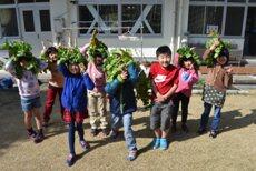小学部の2年生が育てた大根を収穫しました。