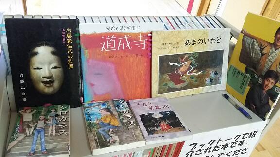 ↑ 今回のブックトークで紹介していただいた本です。絵本、小説、郷土の本などさまざまでした。