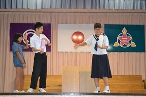 終業式では、児童・生徒代表が、1学期頑張ったことやこれからの目標などについて発表しました。また、校長先生から「夢をもつこと」とその夢に向かって「挑戦をし続けること」の大切さや、身の回りには危険がたくさんあるので、気を付けて生活することなどについて等の話がありました。