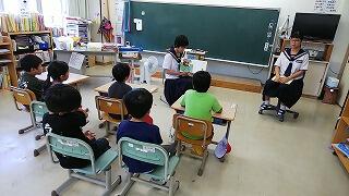 朝の活動で、中学生による小学生への読み聞かせを行いました。