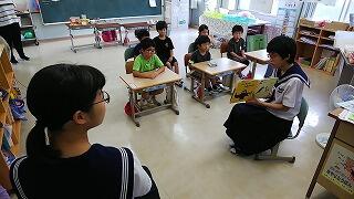 朝の活動で、中学生による小学生への読み聞かせを行いました。