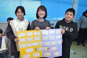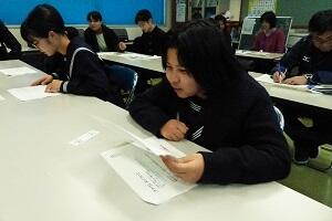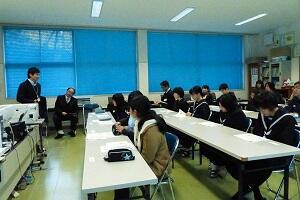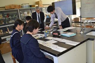中学2年生の理科の授業で、たくさんの情報や手作りの教材等が準備してあり、生徒が一生懸命考える姿を見ることができました。