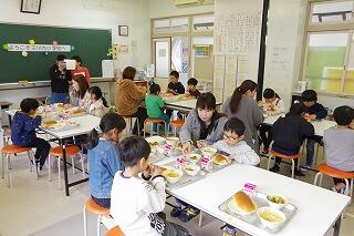 終了後は、給食試食会として、ランチルームで一緒に給食を食べました。