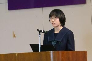 また、先日行われた「子どもの声を聞く会」の話から、様々な代表になることを通して、「覚悟をもって挑戦すること」の大切さを話されました。様々な役割から「逃げず」に、十分な「準備」や「努力」をすることで、「達成感」を味わうことができ、それが「自信」につながると、ノーベル化学賞を受賞された、旭化成名誉フェローで名城大教授の吉野彰氏になぞらえて話されました。