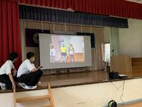 手前の平屋が中学部校舎です。奥が元々の小学校の校舎で、1階の職員室、保健室、3階の音楽室、図書室、家庭科室、理科室は兼用です。校庭は狭くなりましたが、昼休みは小中学生とも元気よく遊んでいます。交流をしていただける学校がありましたら、ご連絡ください。