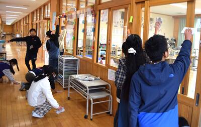 5・6年生が、1~4年生の学級に行って応援の練習をしました。