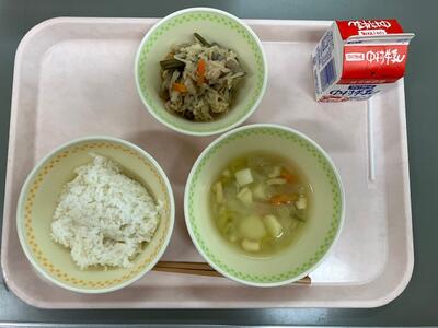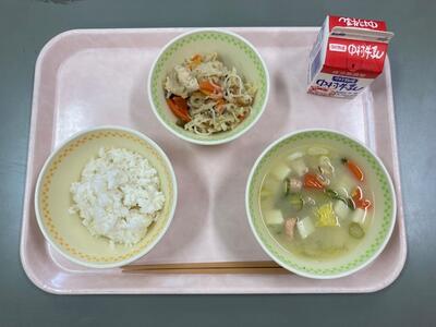 3月4日 麦ごはん 牛乳 五目きんぴら じゃがいものみそ汁
