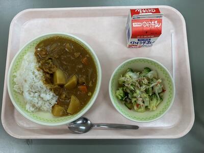 4月12日 ポークカレーライス 牛乳 ブロッコリーサラダ