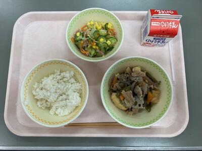 5月20日 牛乳 麦ごはん たけのこのうま煮 和風サラダ