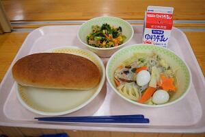 コッペパン、神楽うどん、海そうサラダ、牛乳