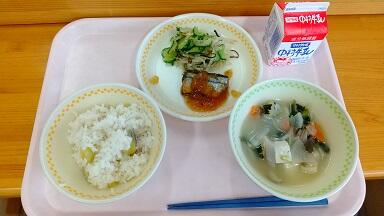 さつまいもごはん、けんちん汁、さんまのみぞれ煮、こんぶ和え、牛乳
