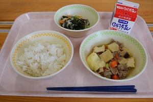 麦ご飯・牛乳・高野豆腐と昆布のいり煮・ごぼうサラダ