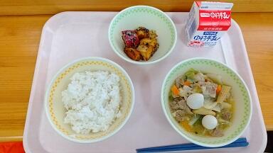 麦ごはん、じゃがいものうま煮、海藻サラダ、牛乳